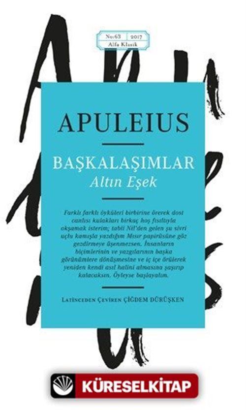 Birbirinden ilginç öyküleri peş peşe dizerek okuruyla ilgisini hiç yitirmeden karşılıklı duygu alışverişinde bulunarak telaşla hevesle istekle yazan Latin edebiyatının ünlü isimlerinden Lucius Apuleius'un yapıtıdır Başkalaşımlar. Batı edebiyatında yüzlerce çevirisi yapılmış pek çok sanat eserine esin kaynağı olmuş görsel sanatların görkemli eserlerine malzeme oluşturmuş 11 kitaplık bir öykü klasiğidir. Roma İmparatorluğunun eyaletlerinde yaşayan sıradan insanların gündelik hayatlarının çarpıcı yanlarının alaycı ve eğlendirici bir ifadeyle sunar. Yanlış bir büyü sonucu eşeğe dönüşmüş bir insanın gözünden insanoğlunun gizemli doğası ortaya dökülür. Bir ahlak felsefecisi gibi insanın yaşamını ahlakını zayıflıklarını ve erdemlerini değerlendiren düşünen konuşan sevinen öfkelenen bu sevimli eşek başından geçen öykülerle okuyucuyu tümüyle kendi dünyasının içine çeker.