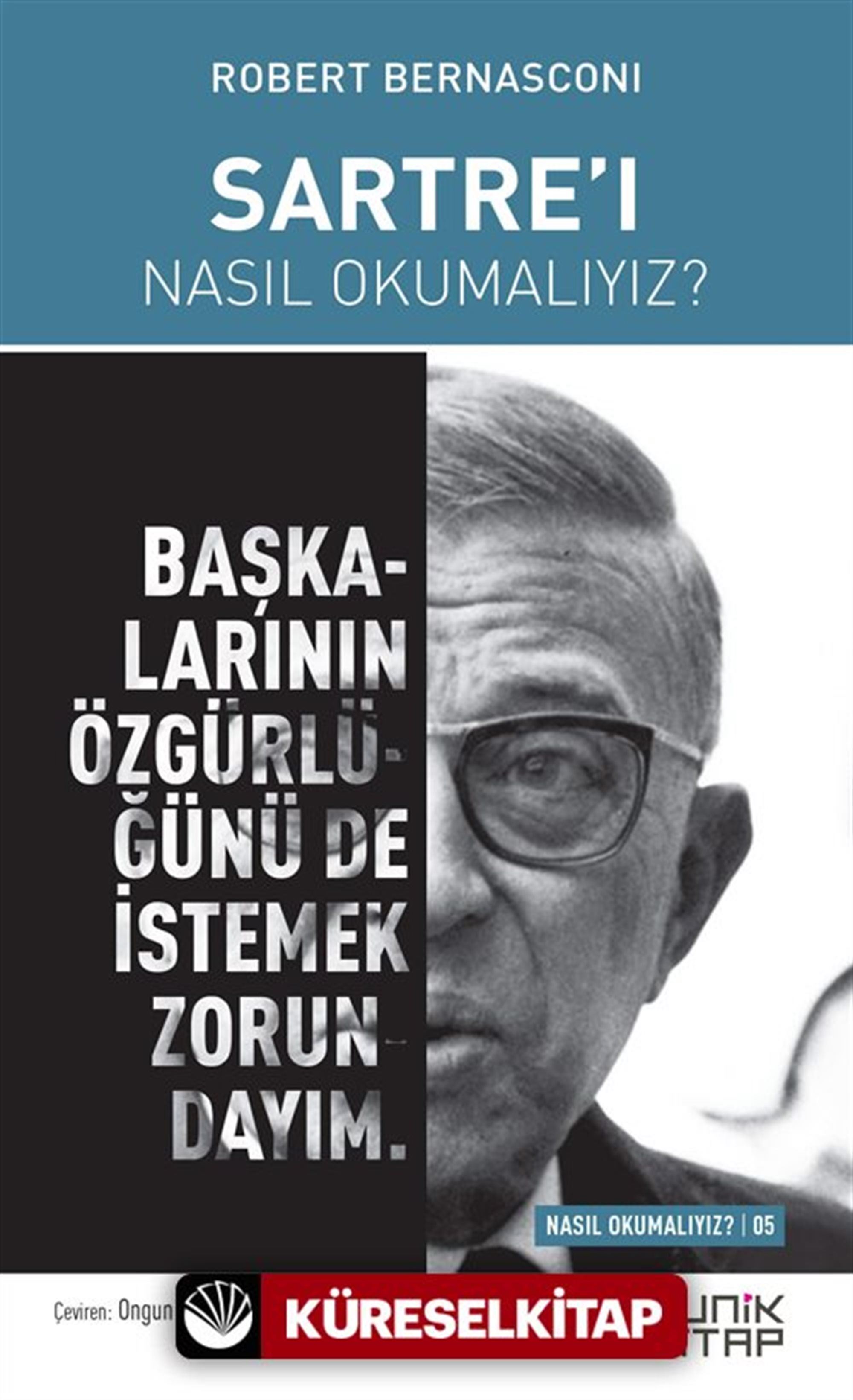 Sartre, yirminci yüzyılda felsefe ve toplum arasındaki zorunlu ilişkiyi güçlü sloganlarla görünür hâle getiren entelektüeller listesinin başında gelir. İnsanın bir özü olduğu düşüncesini çağrıştırabilecek her türlü tanımdan sakınırken, yine insana "doğal" birtakım haklar atfetme zorunluluğundan ileri gelen büyük çelişki, Sartre'ın felsefi mücadelesinin ana hatlarını meydana getiriyordu. Bu çelişki karşısında Sartre, toplum dışında tasavvur edilemeyen insanın varoluşunu yine toplum içinde üstlendiği roller üzerinden inşa ederek özgün bir bakış ortaya koymuştur. Robert Bernasconi bu kısa ve öz metinde, insanlık tarihinin en büyük krizleriyle şekillenmiş bir dekorda Sartre'ı bütün canlılığı ve ayrıntılarıyla dahice resmediyor.