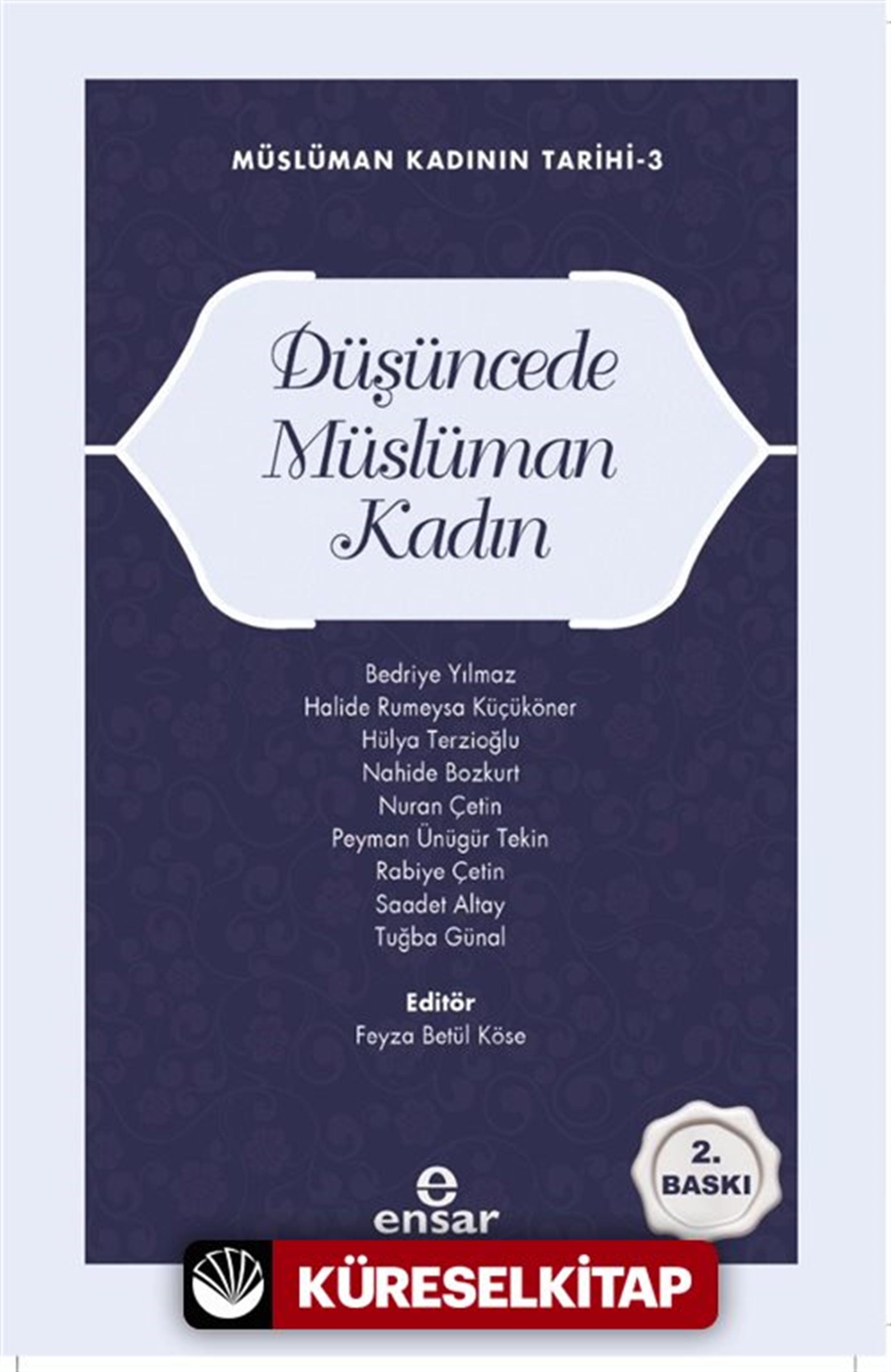 Prof. Dr. Nahide Bozkurt, "Kutsal Metinler ve Müslümanların Kadın Algısı Üzerine" başlıklı bölümde İbrahimî dinlerin kadın algılarını kutsal metinler üzerinden inceledi ve Müslümanların kadın algılarını, Kur'ân'ın kadının varlığı ve toplumsallığına ilişkin ayetleri bağlamında yorumladı. Dr. Tuğba Günal'ın kaleme aldığı "Ontolojik Statüsü Açısından Kadın", kadının, sahip olduğu ontik, epistemik ve ahlâkî donanım/yeterlik konularına eğildi. "Klasik Dönem İslâm Düşüncesinde Kadın Anlayışına Dair" bölümünde Dr. Öğr. Üyesi Saadet Altay, İslam kelamında kadına dair değerlendirmeleri; akıl ve imamet gibi iki temel konu örneğinde ele aldı. Dr. Öğr. Üyesi Peyman Ünügür Tekin, "Şiâ'da Kadın Anlayışı" içerisinde, mezhebin İslam tarihindeki önemli bazı kadın figürlere yaklaşımı bağlamında Hz. Hatice, Hz. Âişe ve Hz. Fâtıma'ya dair Şiî anlayış ve bunun genel kadın algısına etkileri üzerinde durdu. Tarihi süreçte Şîâ tarafından telif edilen tefsir, hadis, fıkıh ve felsefe eserlerinden hareketle Şîâ'nın kadına bakış açısını irdeledi. "Mâtürîdîlikte Kadın Anlayışı" yazarı Doç. Dr. Hülya Terzioğlu, Ehl-i Sünnet'in kurucu isimlerinden İmam Mâtürîdî'nin ve onun görüşleri etrafında şekillenen Mâtürîdîliğin kadın anlayışını, özellikle Te'vîlâtü'l-Kur'ân tefsirinden yola çıkarak değerlendirdi. Doç. Dr. Rabiye Çetin, -Kadın Peygamberin İmkânı Özelinde- alt başlıklı "Kelam Düşüncesinde Kadın" bölümünde, kelam geleneğinde peygamberliğin şartlarından biri olarak kabul edilen "erkek olma"ya dair söylemin, kadın tasavvuruna yansımasını ele aldı. "Tasavvufta Kadın Anlayışı" başlıklı bölümde Doç. Dr. Nuran Çetin, sembol isimler ve söylemler üzerinden sûfîlerin, kadınlara bakış açısına, kadın velîlere ve onların öne çıkan bazı faaliyetlerine, bazı tarikatların kadına karşı tutumuna, meşhur sûfîlerin hayatında kadınların yerine değindi. Dr. Bedriye Yılmaz, "Çağdaş Kur'ân Yorumlarında Kadın" başlığı altında kadının yaratılışı, erkeklerin kadınlar üzerinde kavvâm oluşu, şahitlik, miras, çok kadınla evlenme ve örtünme konularıyla ilgili Kur'ân ayetlerinin çağdaş yorumları üzerinde durdu. Dr. Öğr. Üyesi Halide Rumeysa Küçüköner, "İslâmî Gelenekçilikte Müslüman Kadın" bölümünde cihadî ve Suudi selefilik, medrese gelenekçiliği ve tasavvuf gelenekçiliğinde kadın algısının şekillenişi ve sosyal hayattaki yansımalarını inceledi. Yazar, "İslâmî Islahatçılıkta Müslüman Kadın" yazısında ise İslam geleneğinde zamanla oluşa bozulmalara çözüm bulabilmek hedefiyle ortaya çıkan İslâmî ıslahatçılığın yenilik ve ıslahçı yönünün kadın algısına etkilerini sundu.