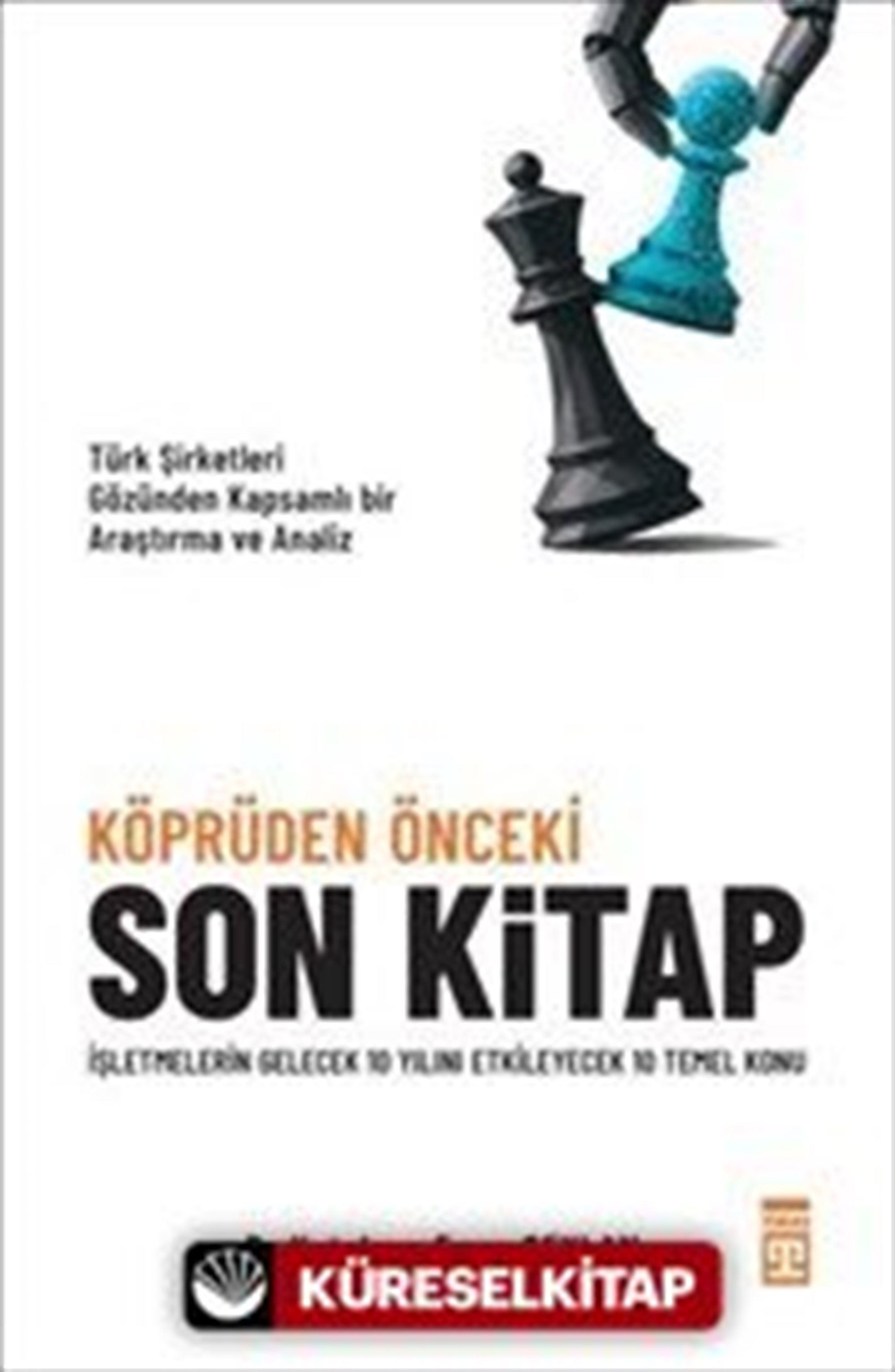 Köprüden Önceki Son Kitap, şirketlerinin geleceği için bir şeyler yapmak zorunda olduğunu düşünen iş insanları için yazıldı. "Çok fazla bilgi" çağında bir süzgeç olma iddiasında. Bugünün telaşı ile önümüzdeki 10 yılın rekabet gündemleri arasında sağlam, uygulanabilir bir geçiş köprüsü kurulmasına katkı sağlama amacında.